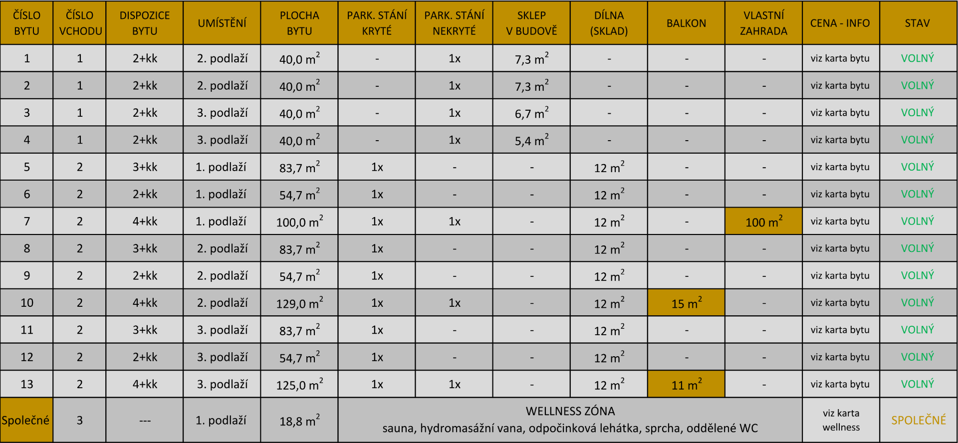 13 moderních bytů 2+kk až 4+kk s wellness zónou